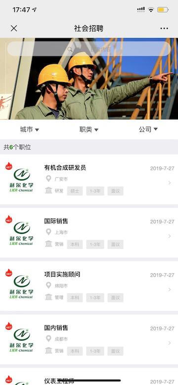 立即咨詢利爾化學招聘